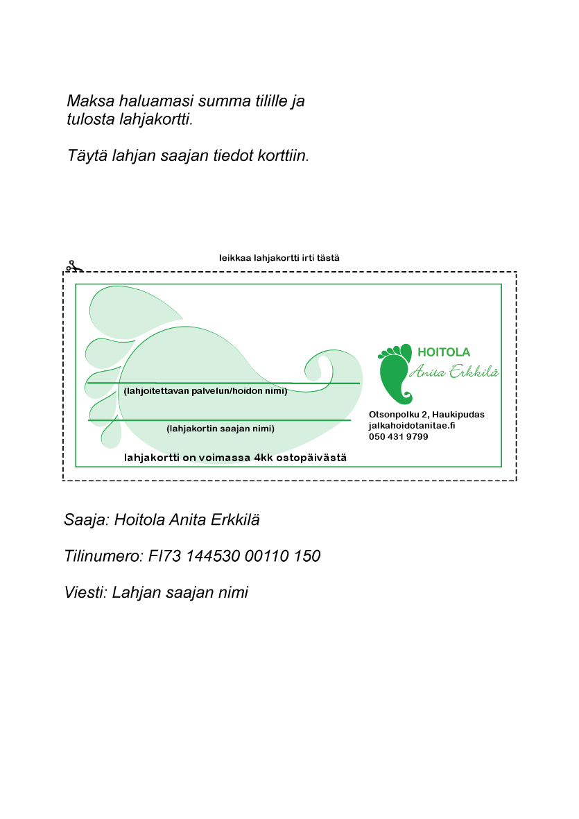 Voit tulostaa lahjakortin klikkaamalla oheista kuvaa.